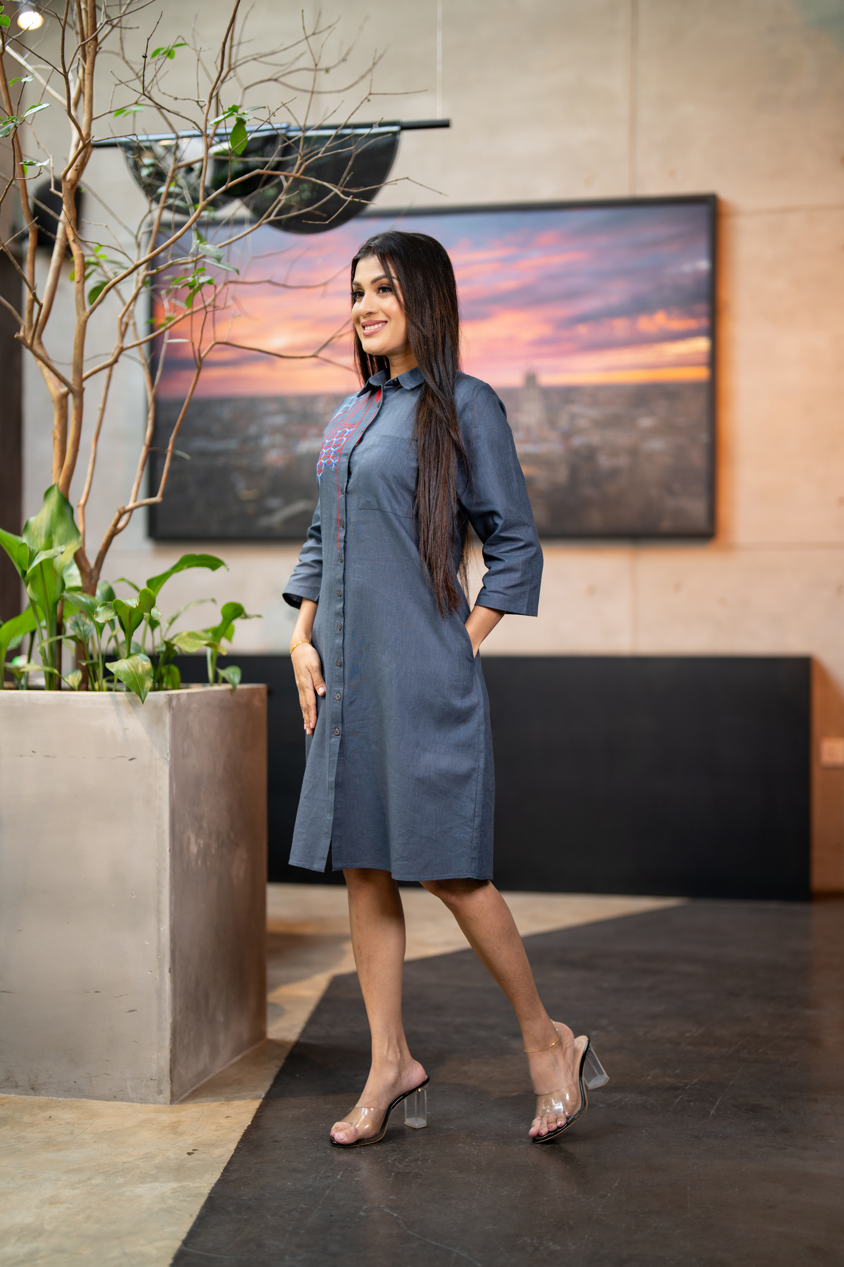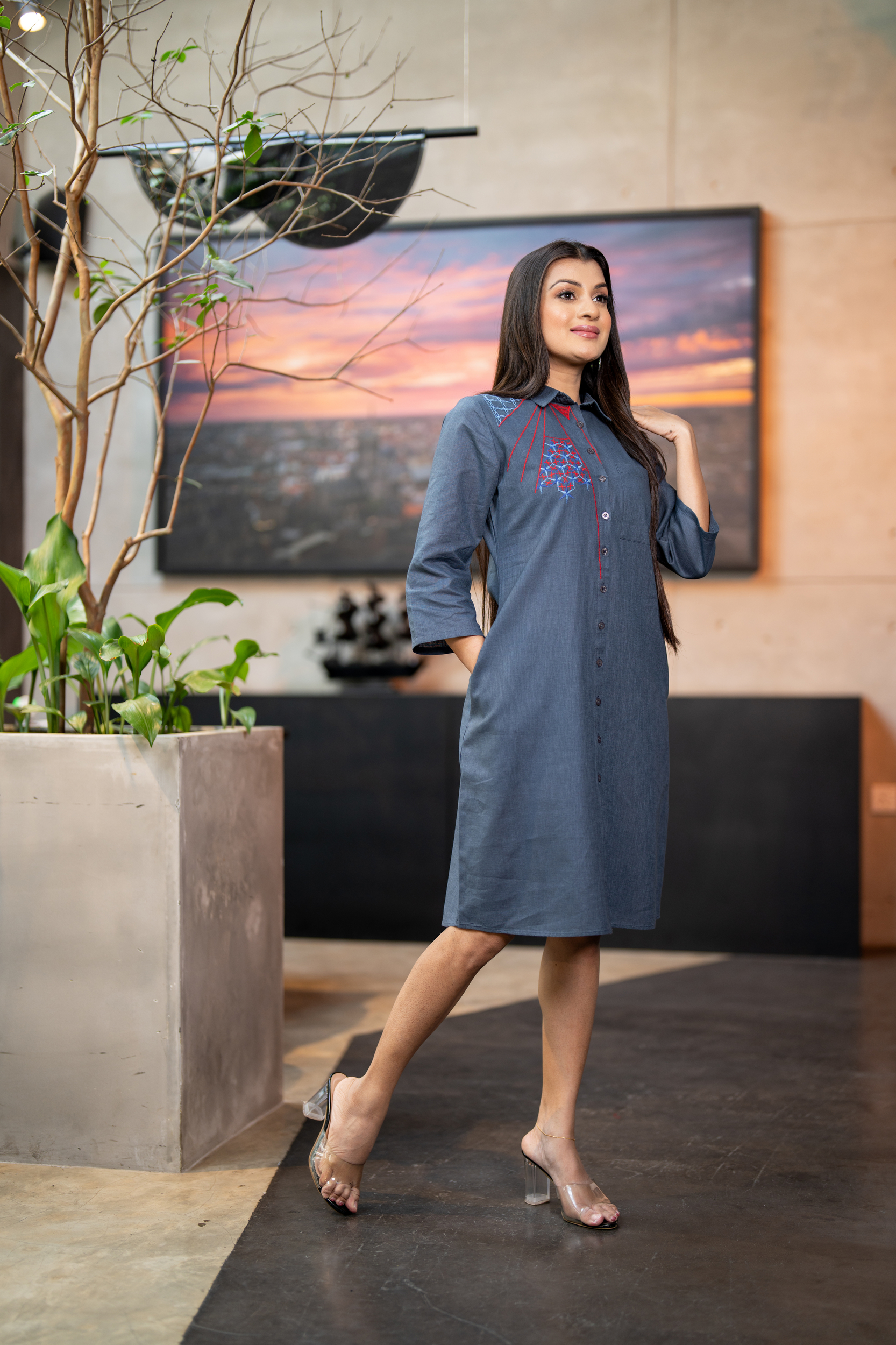 Abstract Embroidered Shirt Dress